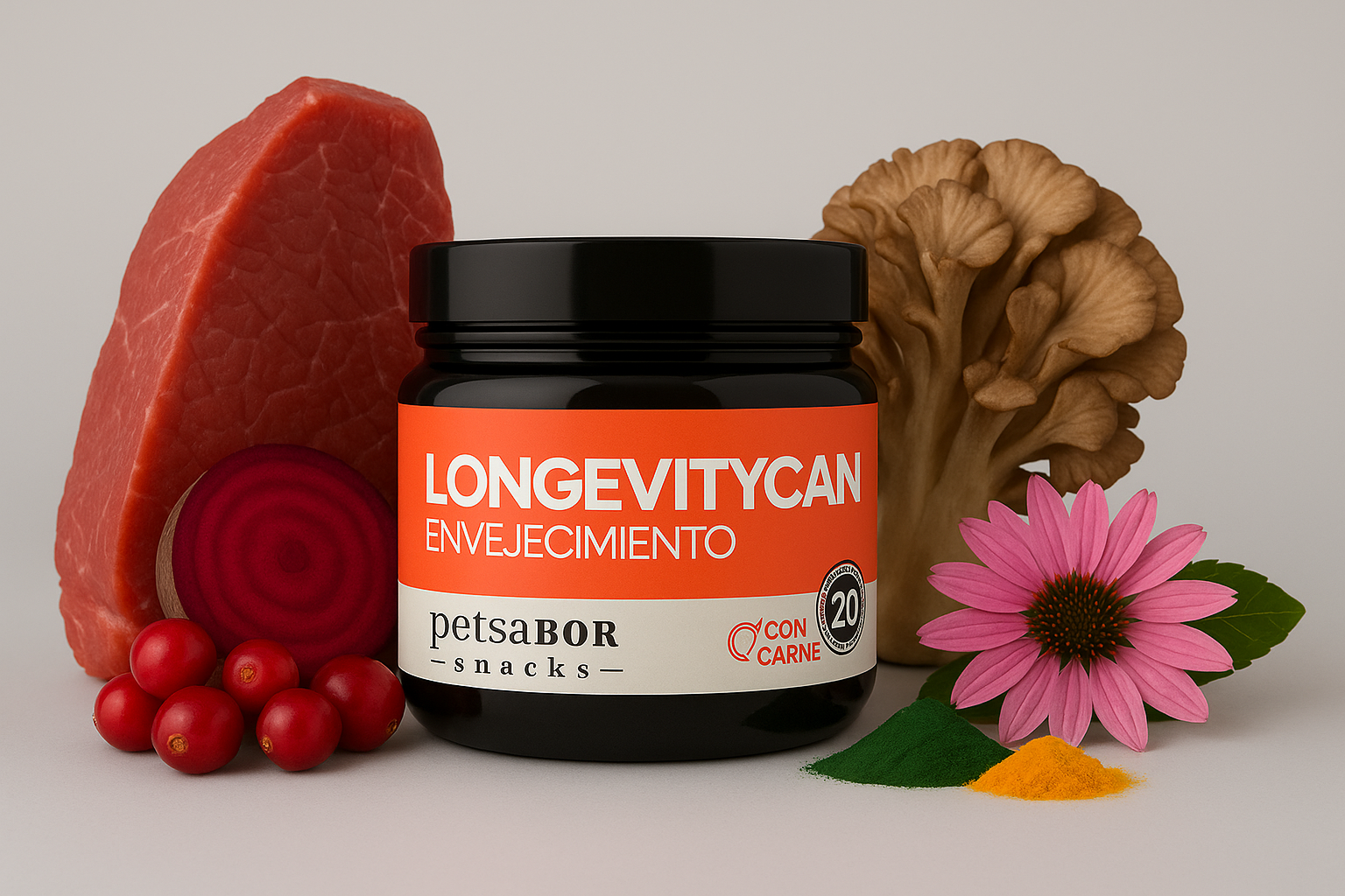 El paso del tiempo no debería restarle energía ni bienestar a tu perro. Longevitycan con carne es un snack funcional pensado para perros mayores que necesitan un refuerzo nutricional para mantenerse activos, fortalecer sus defensas y cuidar su movilidad. Su combinación de antioxidantes, antiinflamatorios y proteínas de alta calidad ayuda a combatir los efectos del envejecimiento y a preservar su vitalidad.
